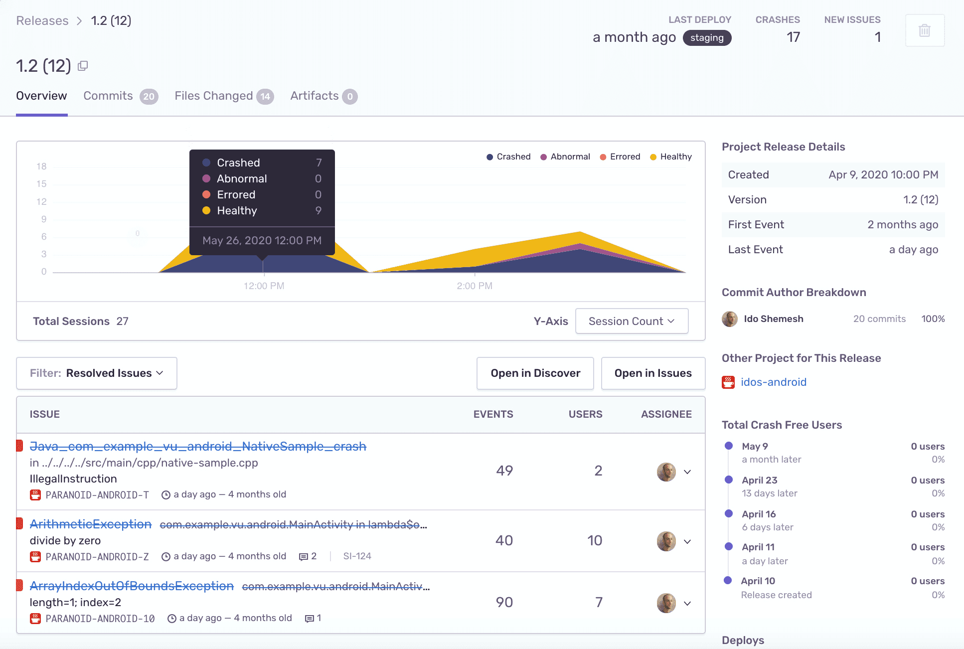 Configuring the release version ID on the SDK will associate every error that happens in your application runtime with a specific release version of your code. This way, you know exactly when an error was introduced into your source code. It also unlocks these powerful features and workflows: